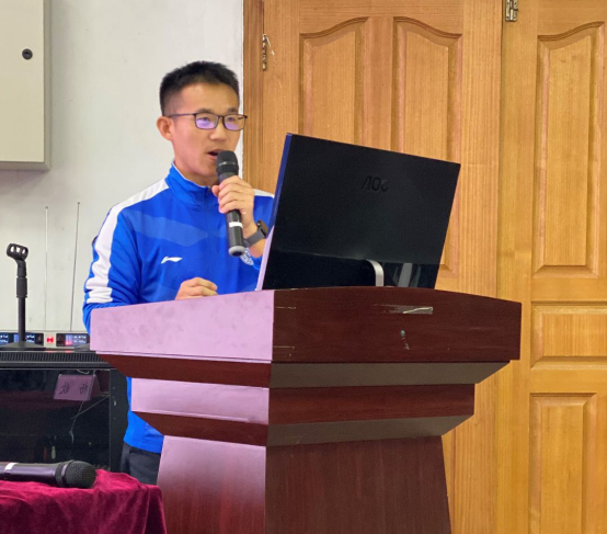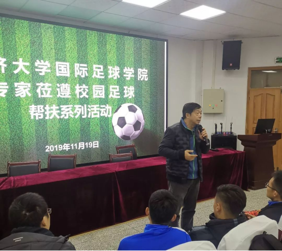在专题讲座环节,陶骆定教授、杨钦博士、研究生刘宗麒分别向来自遵义市不同区县的80多位中小学体育教师分享了《上海市校园足球联盟建设方案》、《如何开展校园足球科研工作》和《19-20足球竞赛规则讲解简析》的精彩报告。陶骆定教授还分享了上海市校园足球的“育人”发展理念和