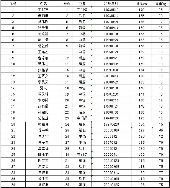 男子足球队(超级组)大名单、赛程、全家福以及教练组和球员单人照。