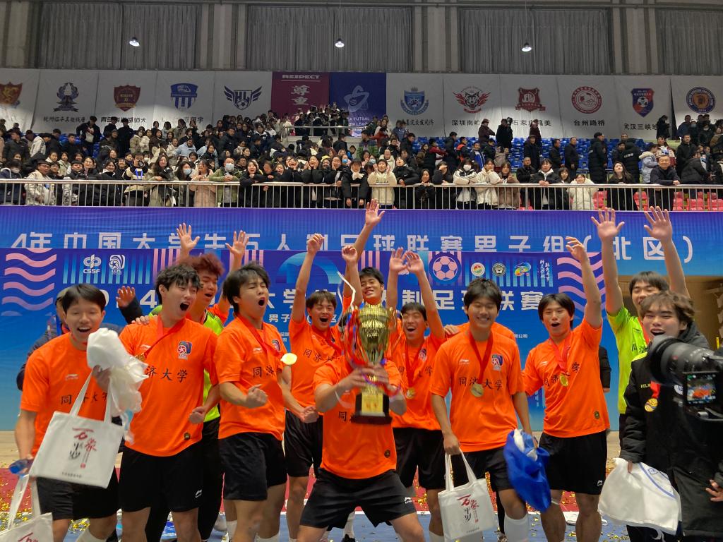 以常规赛3:3打平、点球比分6:5的成绩击败老牌强队清华大学,成功取得大学生五人制足球联赛(男子组北区)冠军!