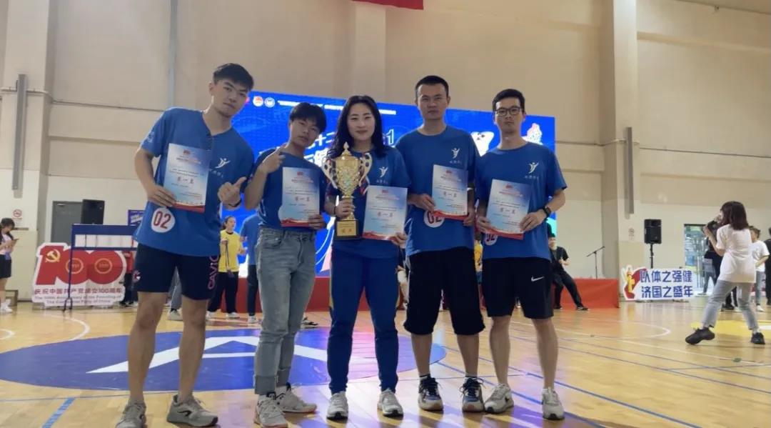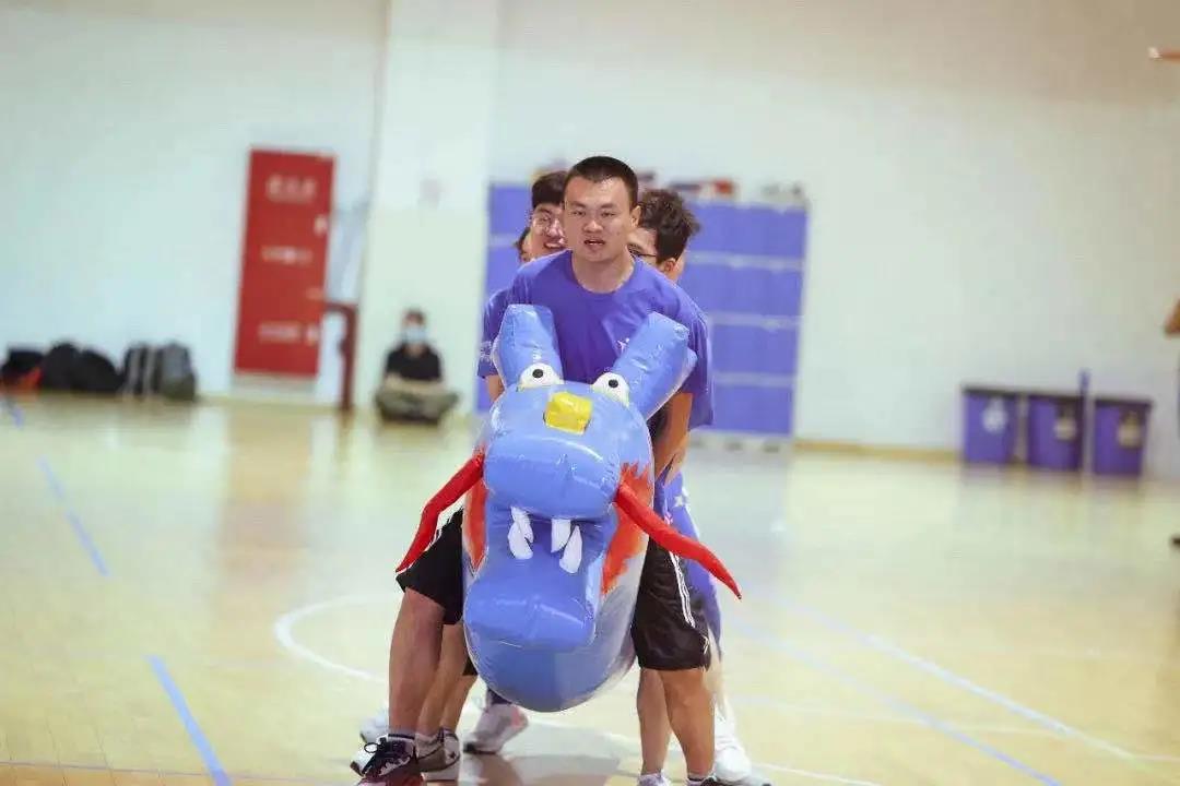 比赛进入最后阶段——“乘风破浪”。此刻,场上竞争越来越激烈,我院代表队的五位选手拼尽全力,奋勇向前,最终乘坐旱地龙舟超越其他对手率先冲向终点,夺得本次竞赛冠军!