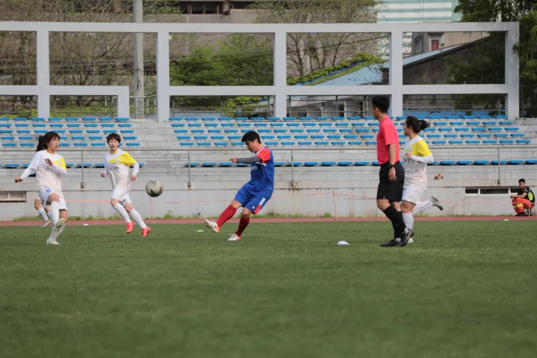 第10分钟时,彭伟国老师接我院季斌老师后场传球后,一记斜右45度长传与曲圣卿老师形成连线,曲圣卿老师停球后立即射门,女足守门员季杰同学在近距离英勇化解了这次射门。