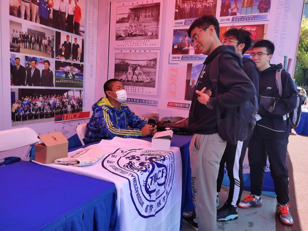 国际足球学院的老师、同学们耐心地为前来咨询的同学们解答问题,还有一些同学们参与了颠球小游戏,赢取了奖品。