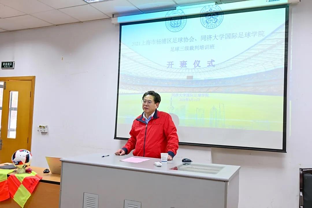 他在讲话中阐述了校园足球的重要性,同济足球百年来一直支持校园足球的发展,本着“培养全方位人才”的教育从业者的初心,本次培训是培养裁判后备人才的重要举措,为更多的校园基层裁判员提供了学习平台,在提升学生裁判员执法水平的同时也为上海裁判员队伍选拔优秀人才、为杨浦区足球事业发展贡献一份力量。