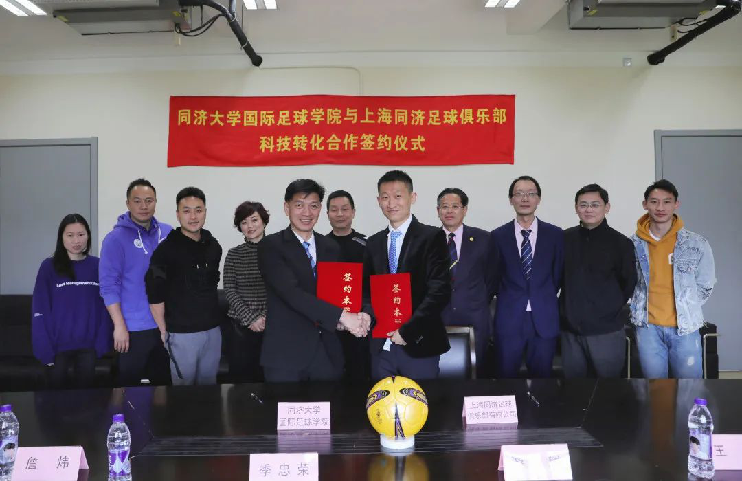 为进一步推动同济大学足球事业的发展,促进同济足球教学、科研、实践及产业融合,充分发挥同济大学国际足球学院与上海同济足球俱乐部有限公司的综合资源优势,实现校企紧密融合、企业反哺学校学科建设的目标。2020年4月23日,同济大学国际足球学院与上海同济足球俱乐部有限公司双方在四平路校区新体育馆210会议室签署共建“产学研用”和“教学实践”合作平台协议。同济大学体育教学部党委季忠荣书记、国际足球学院院长游松辉教授、国际足球学院党支部詹炜书记、同济足球俱乐部副总经理王强及教职员工代表参加签约仪式。