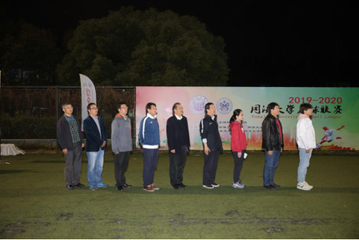 2019年11月12日17:30,晴空万里,微风徐徐,首届同济大学足球联赛开幕式在同济大学四平路校区樱花球场盛大举行,同济大学副校长雷星晖、体育教学部党委书记季忠荣、国际足球学院院长游松辉、生命科学与技术学院党委副书记相波、人文学院党委副书记刘涛、体育教学部副主任李瑞杰、体育教学部副主任赵佳敏、化学科学与工程学院党委副书记母朝静、建筑与城市规划学院团委副书记赵承志、新生院同心学堂丁瑞庭出席了开幕式。