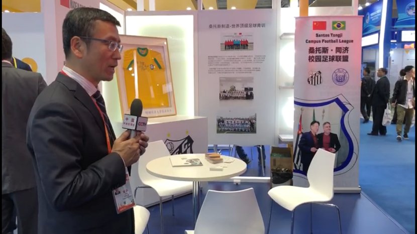 北京时间2018年11月5日,首届中国国际进口博览会在上海开幕,各国展商、嘉宾、观众云集上海。在服务贸易展区,巴西桑托斯足球俱乐部以“桑托斯·同济校园足球联盟”的身份亮相,吸引了来自政府、教育、文体等各个行业的精英代表驻足访问。同济大学常务副校长伍江和中央电视台资深主持人白岩松均到展台参观或报道。