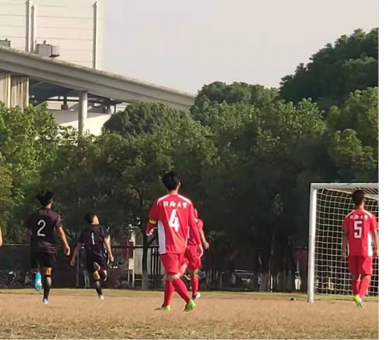 下半场双方易边再战。第58分钟,8号辛鸿儒在对方禁区前突施冷箭,对方门将反应不及,皮球直奔球门左下角,同济大学2:0领先!