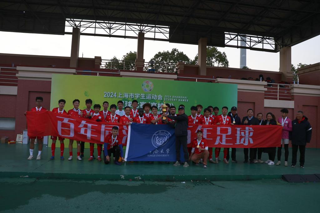 11月26日14:30,2024年上海市大学生足球联盟联赛男子校园组决赛,同济大学与上海交通大学的比赛在上海健康医学院北苑足球场开赛。教练组在赛前做好了详细的技战术部署,队员们精神饱满,在球场上奋勇拼搏,最终以2:1战胜对手,夺得本届赛事的冠军!