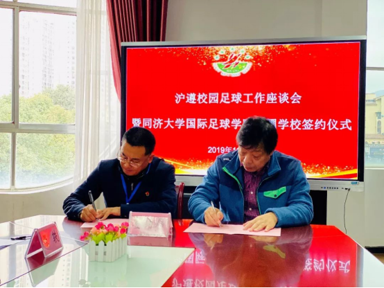 11月20日上午,沪遵校园足球工作座谈会暨同济大学国际足球学院苗圃学校签约仪式在遵义市第一中学举行,市教育局素质教育中心负责人、四城区教育局代表、市级校园足球基地校负责人参会并共同见证了签约仪式。在经过专家组现场调研、了解并报院领导同意后,同济大学国际足球学院决定授予遵义市第一中学为“同济大学国际足球学院苗圃计划试点学校”。受同济大学国际足球学院院长游松辉的委托,陶骆定教授与遵义市第一中学党总支书记、校长周德胜签订“苗圃学校”试点单位合作意向协议并向遵义市第一中学授牌。